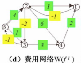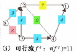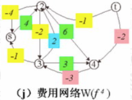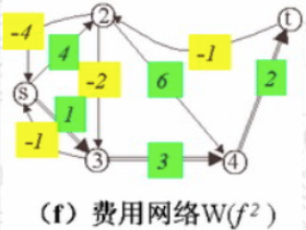 由于无法找到从 vs->vt 的最短路,所以 f(4) 就是该网络的最小费用最大流。