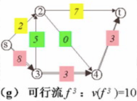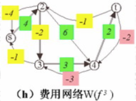 当线路流量小于该线路的最大容量时,则增加反向流量,费用为原始费用的负数。如vs->v3新增v3->vs;