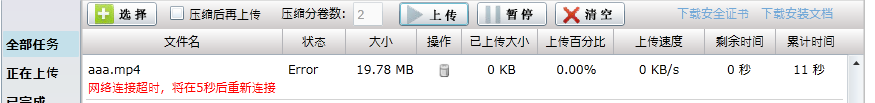 3.实时显示上传的进度:上传百分比,上传速度,上传时间,剩余时间等。