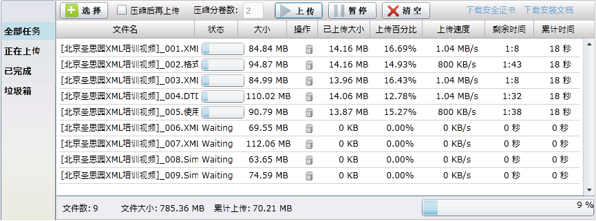 5.把 已完成、正在上传、以删除 的文件 分类显示。
