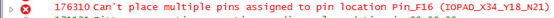 "Can't place multiple pins assigned to pin location Pin_F16 (IOPAD_X34_Y18_N21)" |