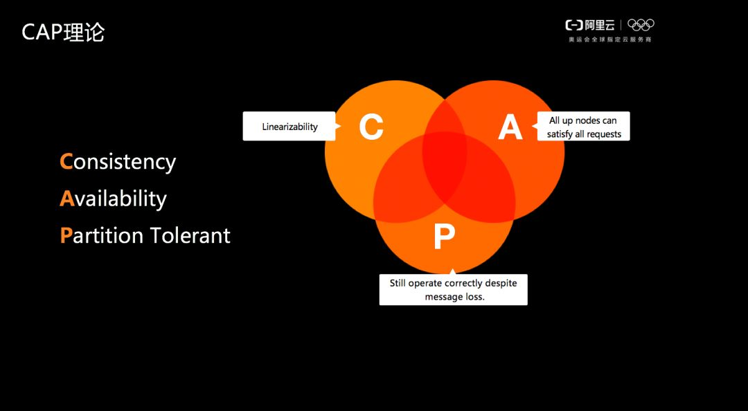 对于高可用的多副本而言,如何保证副本之间的数据一致性?在数据库里面有一个经典的CAP理论,其理论结果是在 Consistency、Availability 和 Partition Tolerant 三者之间只能选择两个。现在大家的一般选择都是 C+P,同时对于 A 而言,通过三副本技术和分布式一致性协议,使得 A 达到6个9或者7个9,这样基本上就做到了100%的 CAP。