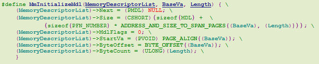 - 分配MDL的内存----包括上面介绍的struct _MDL(属于head部分),ULONG型body部分。
