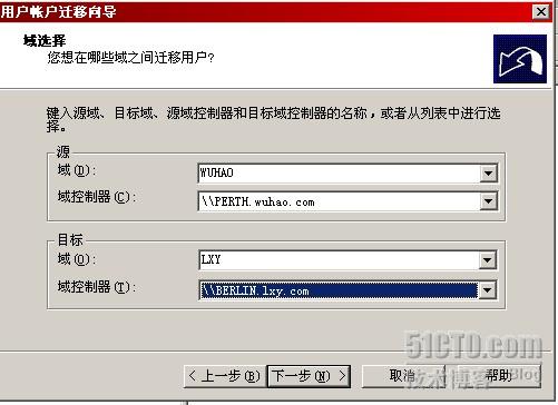 将wuhao.com域中的用户wuhao和用户LXY迁移到lxy.com域中