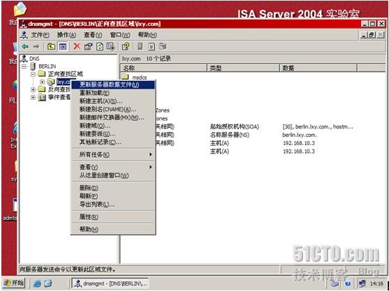我们来到DC3上,打开DNS,展开正向查找区域,鼠标右键lxy.com区域