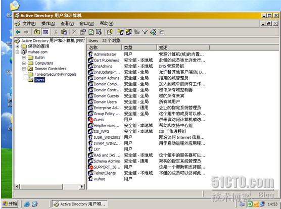 1)在DC1上,打开AD用户和计算机,鼠标右键wuhao.com