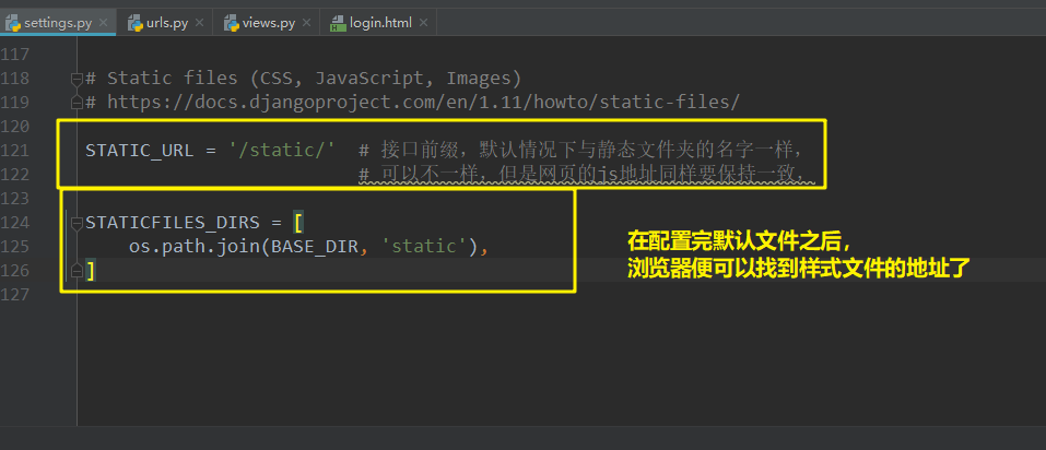 MIDDLEWARE = [ 'django.middleware.security.SecurityMiddleware', 'django.contrib.sessions.middleware.SessionMiddleware', 'django.middleware.common.CommonMiddleware', # 'django.middleware.csrf.CsrfViewMiddleware', 'django.contrib.auth.middleware.AuthenticationMiddleware', 'django.contrib.messages.middleware.MessageMiddleware', 'django.middleware.clickjacking.XFrameOptionsMiddleware', ] TEMPLATES = [ { 'BACKEND': 'django.template.backends.django.DjangoTemplates', 'DIRS': [os.path.join(BASE_DIR, 'templates')], 'APP_DIRS': True, 'OPTIONS': { 'context_processors': [ 'django.template.context_processors.debug', 'django.template.context_processors.request', 'django.contrib.auth.context_processors.auth', 'django.contrib.messages.context_processors.messages', ], }, }, ] STATIC_URL = '/static/' # 接口前缀,默认情况下与静态文件夹的名字一样, # 可以不一样,但是网页的js地址同样要保持一致, STATICFILES_DIRS = [ os.path.join(BASE_DIR, 'static'), ]