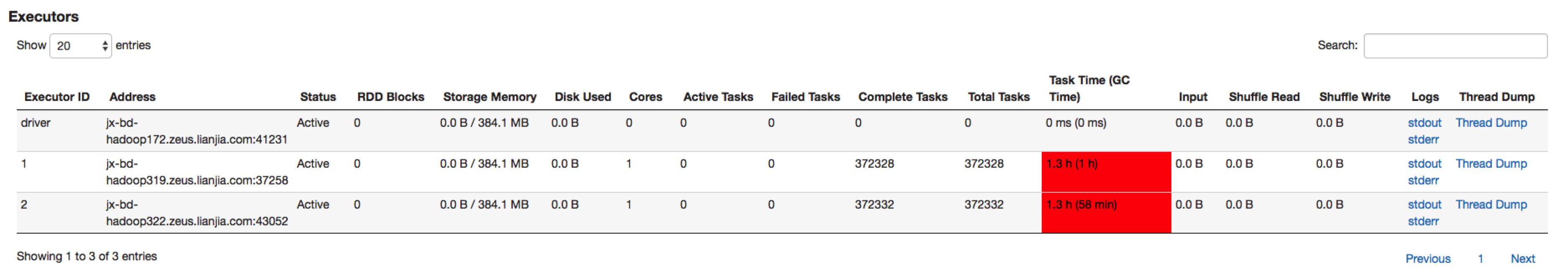 出现这种问题之后,紧接着就会出现Executor和Driver间心跳异常,或者Executor假死的状态,一般出现这类假死、jvm没有响应的问题大都可初步判断为是因为Jvm的Full GC而造成的Stop the World现象。