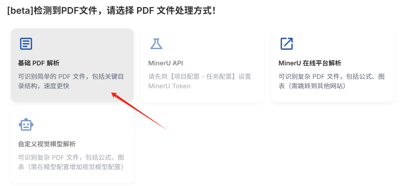 上传准备好的行业数据MD文件,选择基础PDF解析