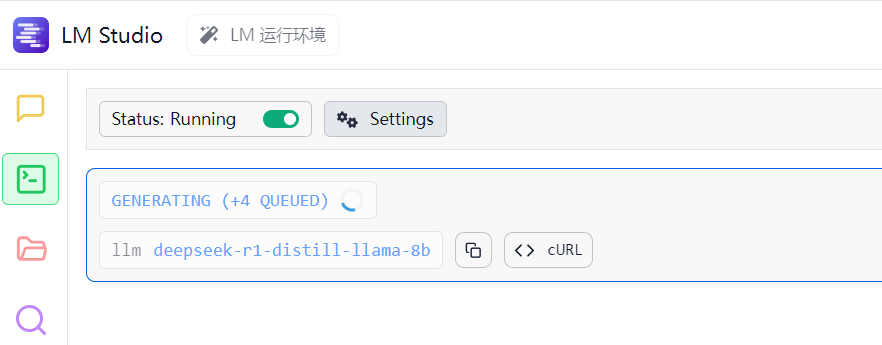 使用LM Studio软件,启动一个deepseek-r1-distill-llama-8b模型