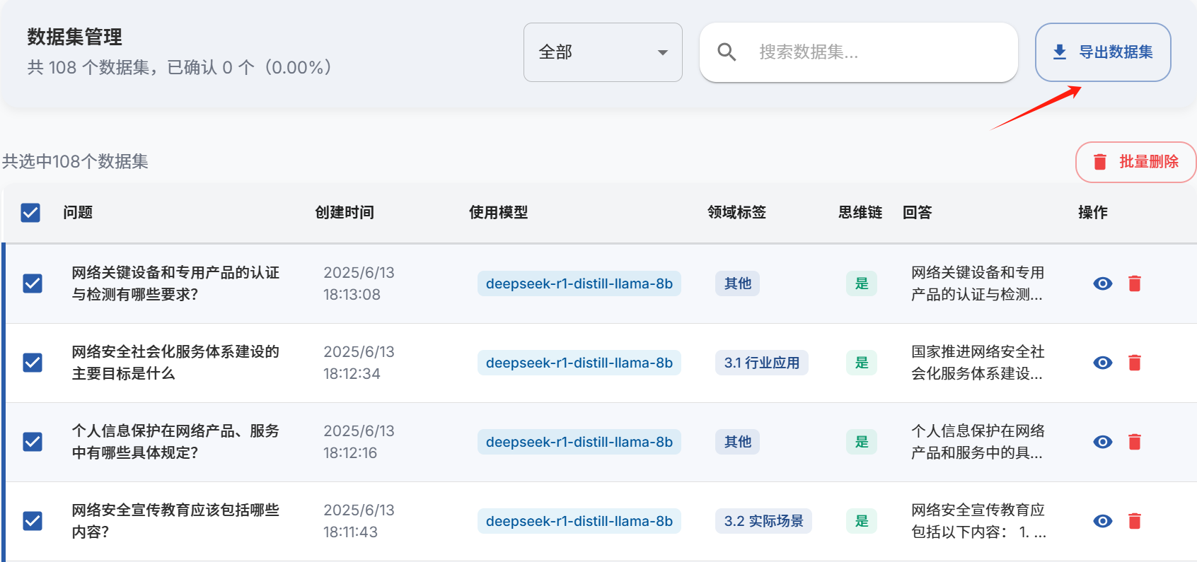 至此,我们已利用 Easy Dataset 工具完成了“网络安全领域数据集” 的处理与生成。