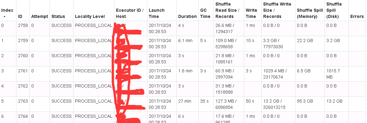 针对该6000亿条记录进行创建索引,耗费了20小时后依然是在stage2失败了,此方案推翻。