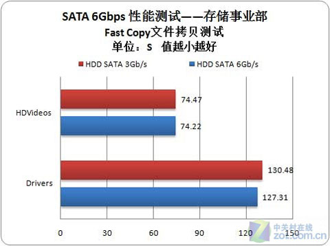 该项目主要体现传统硬盘在SATA3.0和SATA2.0方面的差异,毕竟SSD固态硬盘写入方面不是非常稳定,所以测试出的数据差异较大。从测试中看出,希捷的SATA3.0 2TB硬盘同SATA2.0 1TB硬盘在文件拷贝方面成绩相仿,也可以直观看出SATA3.0的优势并没有体现出来。