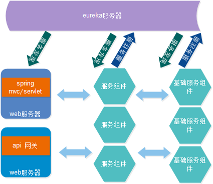 所有的服务端及访问服务的客户端都需要连接到注册管理器(eureka服务器)。服务在启动时会自动注册自己到eureka服务器,每一个服务都有一个名字,这个名字会被注册到eureka服务器。使用服务的一方只需要使用该名字加上方法名就可以调用到服务。