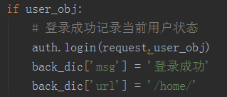 如果验证码一致且user_obj存在说明输入无误,登录成功