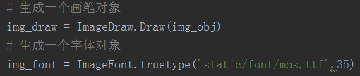 然后生成画笔对象和字体对象,字体对象需要百度ttf下载一个字体然后放入本地,第二个参数表示字体高度,不超过图片高度