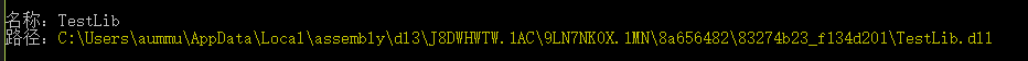 我为啥要输出路径呢,就是让大伙能够清楚地看到,TestLib 类库已经被复制到另一个目录中执行了。请看: