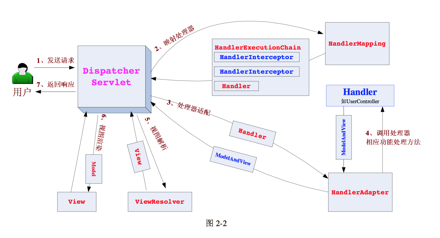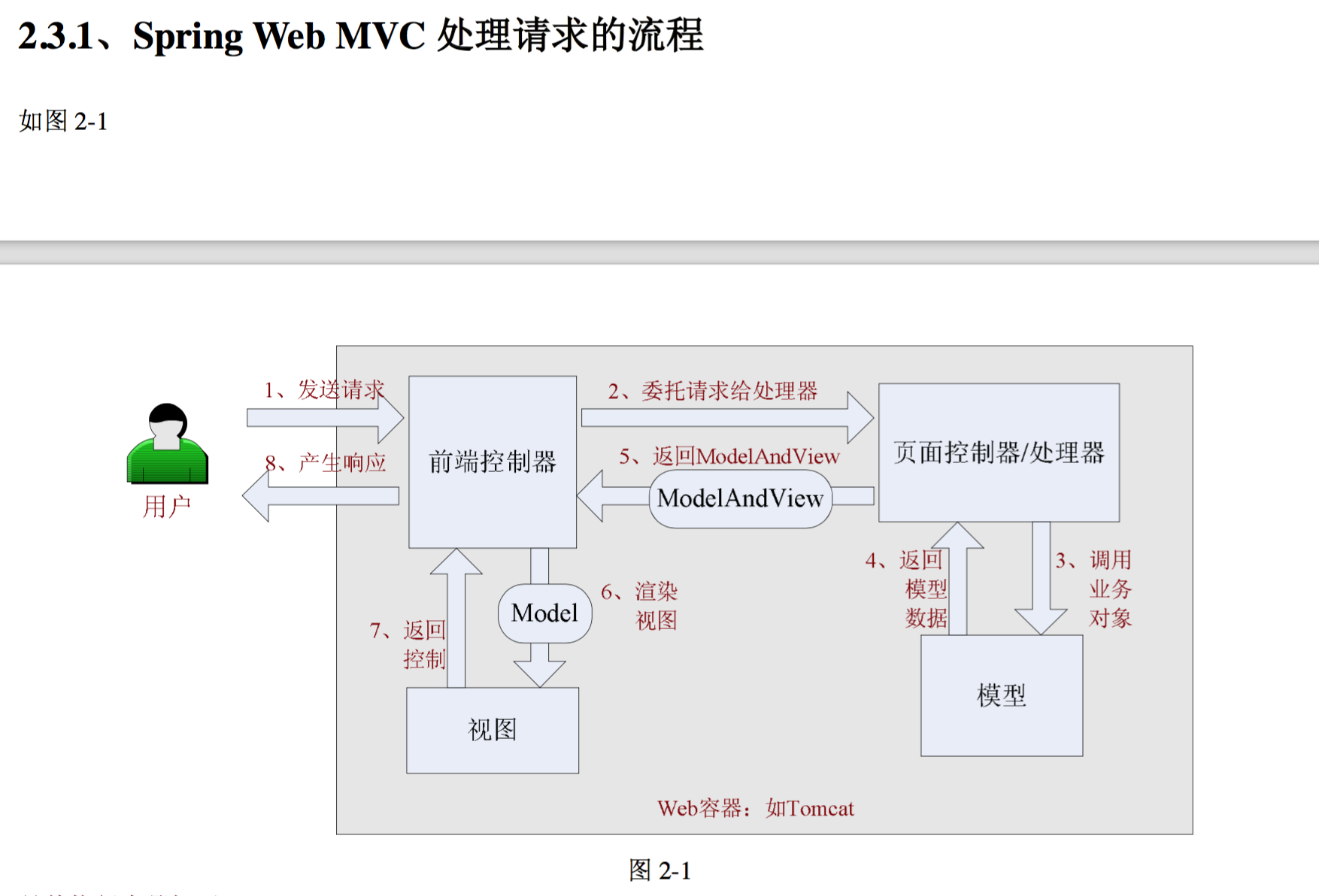 SpringMVC是请求驱动,处理请求的流程简化如下(其中应用控制器、页面控制器等没有分清楚):