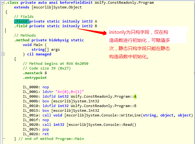 那么这个面试题的IL是什么样子的呢?这里为了方便对比,将readonly的IL部分贴到一起,方便对比。