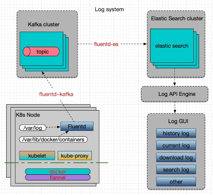 容器平台的日志系统一般包括:Kubernetes 组件的日志,资源的事件日志及容器所运行的应用的日志。所以一个好的日志系统至少需要 cover 到这几块。