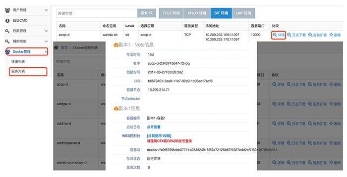 万达容器云平台支持快速部署、弹性伸缩、负载均衡、灰度发布、高效运维及微服务等特性。用户可以基于 Dashboard 简单方便地上线和管理着各自业务。目前在我们的容器云平台上,平稳高效运行着近 400 款包括支付、酒店等核心业务,管理着公司上万个容器。经历住了双旦、618 及双 11 等大型活动的考验。