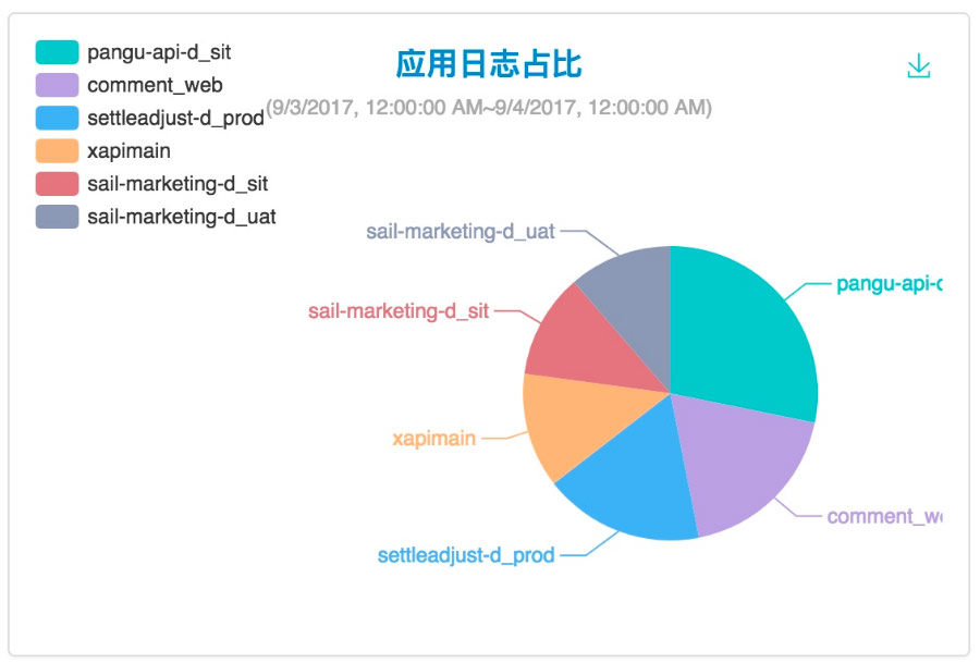 容器中输出的日志都会以 *-json.log 的命名方式保存在 /var/lib/docker/containers/ 中,系统日志都在 /var/log 中。Fluentd 以 Daemon Set 运行于所有的 Node 中进行数据采集,为了保证性能,引进了 Kafka 作为消息队列及日志转发,由于不想维护多个组件,中间转发不用 Logstash ,所以需要引入了两个 Fluentd 的插件 fluentd-kafka 及 fluentd-es,前者用于推送数据到 Kafka,后者用于将数据推到 ElasticSearch 中。最后实现一个 Log API Engine 用于供上层 Log GUI 调用。这个 Engine 封装了实时日志、历史日志下载和查询、应用日志占比、日志等级占比等 Restful API。下面是我们的部分截图: