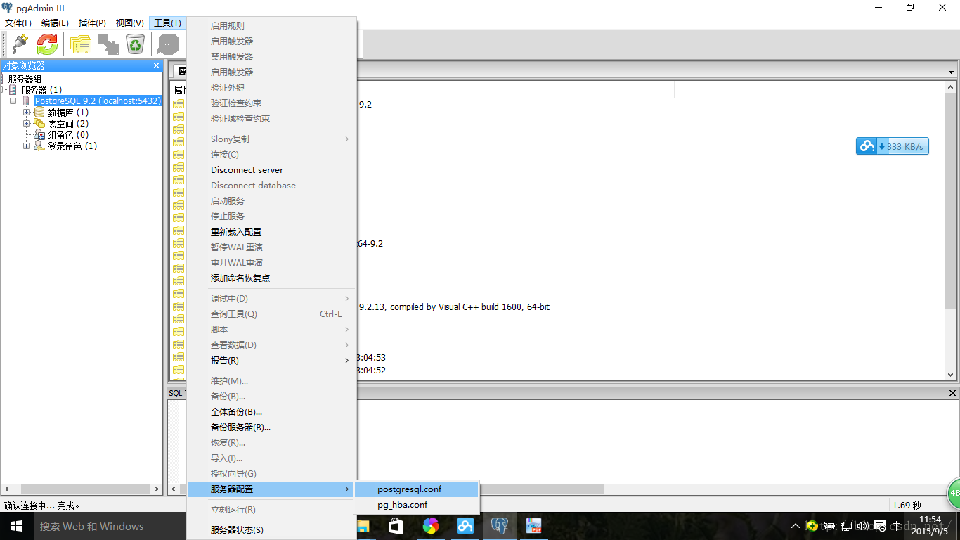 1.已管理员身份登陆postgresql,单击工具-->服务器配置-->postgresql.conf.