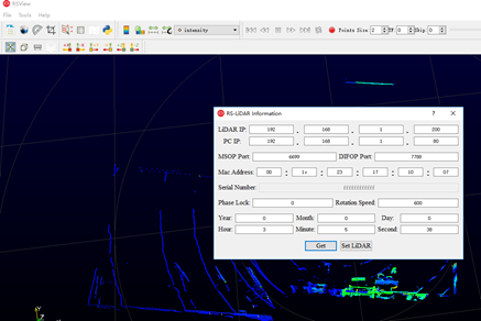 Tools -> RS-LIDAR Information ->Get ,查看雷达的IP和端口号。