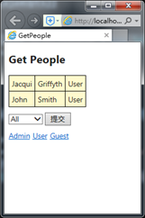 我们采用LINQ,创建了一个新的对象序列,它只保护Person对象的FirstName和LastName属性,并伴有Role值的字符串表示。这样一来,我们就能得到我们想要的结果了: