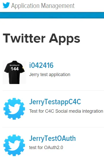 Consumer key和Consumer Secret从Twitter应用管理网站上获取(您需要事先创建一个新的twitter应用):