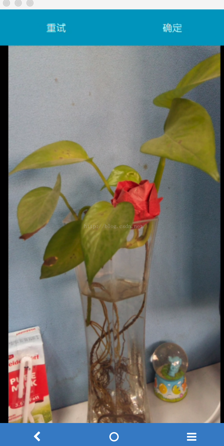 这里首先确定了保存的路径为根文件夹下的test.jpg,然后通过intent,传入这个路径的Uri,打开相机进行拍照,这里有对拍照的返回,假设返回成功,那么就调用CROP的功能对比片进行裁剪,进入到裁减后返回成功就把图片显示在layout创建的ImageView中。