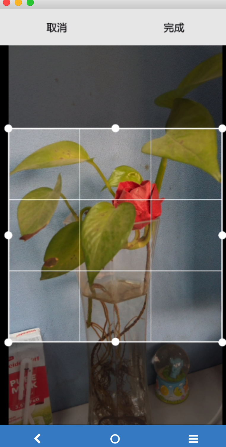 点击选择照片button。我们会进入到相冊的app里面,然后选择一张照片,然后裁剪后保存。如上图所看到的。