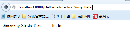 2. 访问http://localhost:8089/Hello/hello.action?msg=hello