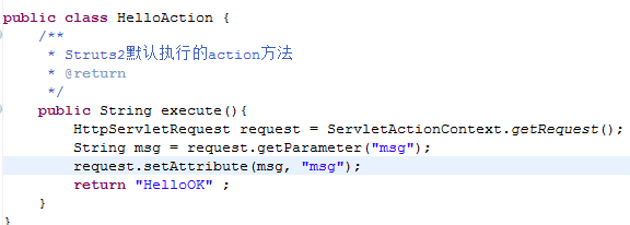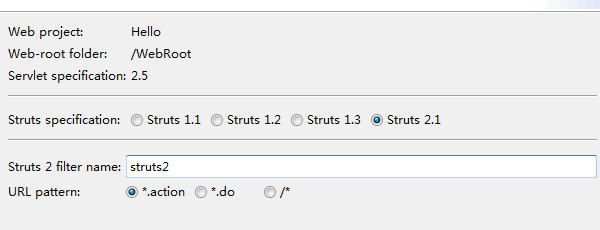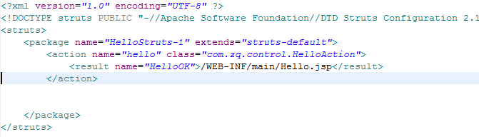 package name为自定义的、action name为*.action中的* 、result name则是HelloAction中return的结果