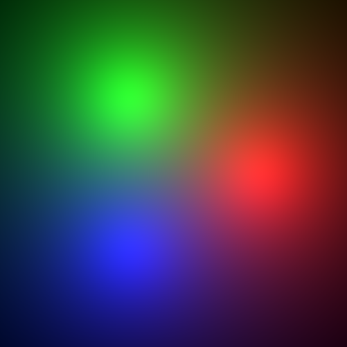clear all; close all; clc; r = [0.3,0,0.5]; g = [0.3,-0.5*cos(pi/6),-0.5*sin(pi/6)]; b = [0.3,0.5*cos(pi/6),-0.5*sin(pi/6)]; imgr1=[];imgr2=[]; imgg1=[];imgg2=[]; imgb1=[];imgb2=[]; for y=-1:0.004:1 imgr1=[];imgg1=[];imgb1=[]; for z=-1:0.004:1 pm=[0,y,z]; lightr=pm-r; lightg=pm-g; lightb=pm-b; imgr=1/norm(lightr); imgg=1/norm(lightg); imgb=1/norm(lightb); imgr1=[imgr1 imgr]; imgg1=[imgg1 imgg]; imgb1=[imgb1 imgb]; end imgr2=[imgr2;imgr1]; imgg2=[imgg2;imgg1]; imgb2=[imgb2;imgb1]; end [h w]=size(imgr2); img=zeros(h,w,3); img(:,:,1) = mat2gray(imgr2); img(:,:,2) = mat2gray(imgg2); img(:,:,3) = mat2gray(imgb2); imshow(img) imwrite(img,'img.png')