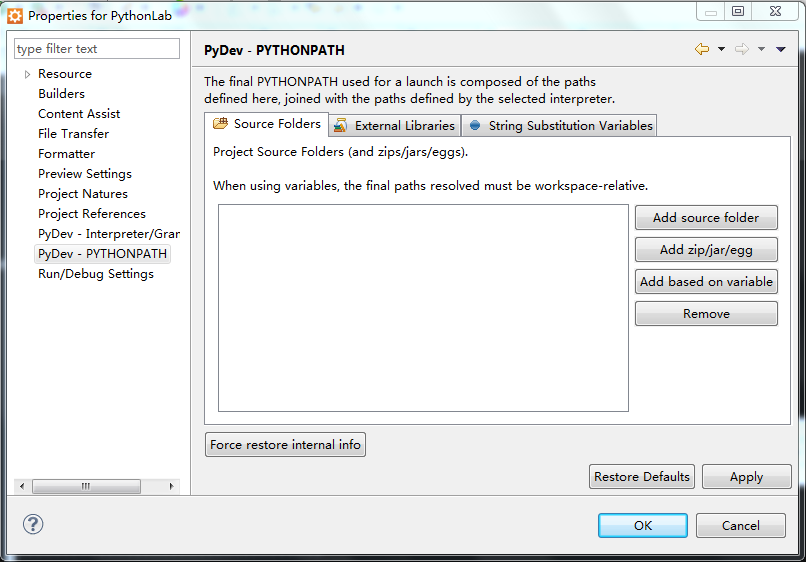 与PYTHONPATH有关的一个问题是Eclipse下使用PyDev开发Python可能遇到的Unresolved Import问题,其解决方法就是设置项目的PYTHONPATH,将要导入的模块所在的目录添加到PYTHONPATH中: