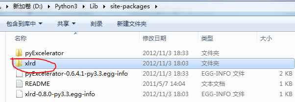 而D:\Python3\Lib\site-packages目录下全部是第三方Python模块,比如我之前安装的xlrd模块(处理Excel的Python模块):