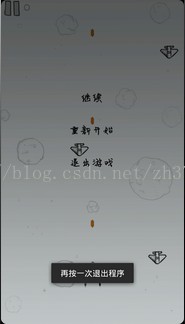 }可以看到有两个方式,注释的那个指的是按一次返回键则弹出对话框,而没注释掉的那个指的是按两次返回键退出程序的操作,另外要注意后面那个方式要在这个方法前声明一个变量(不知道JAVA中可不可以这样说):