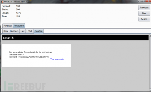 get参数中添加revelio,满足显示key条件,但要避免刷新,所以使用burp抓包,把第一次抓到的数据包放到Repeater中Go一下,这样可以避免第二次的跳转,在返回中看到了key。