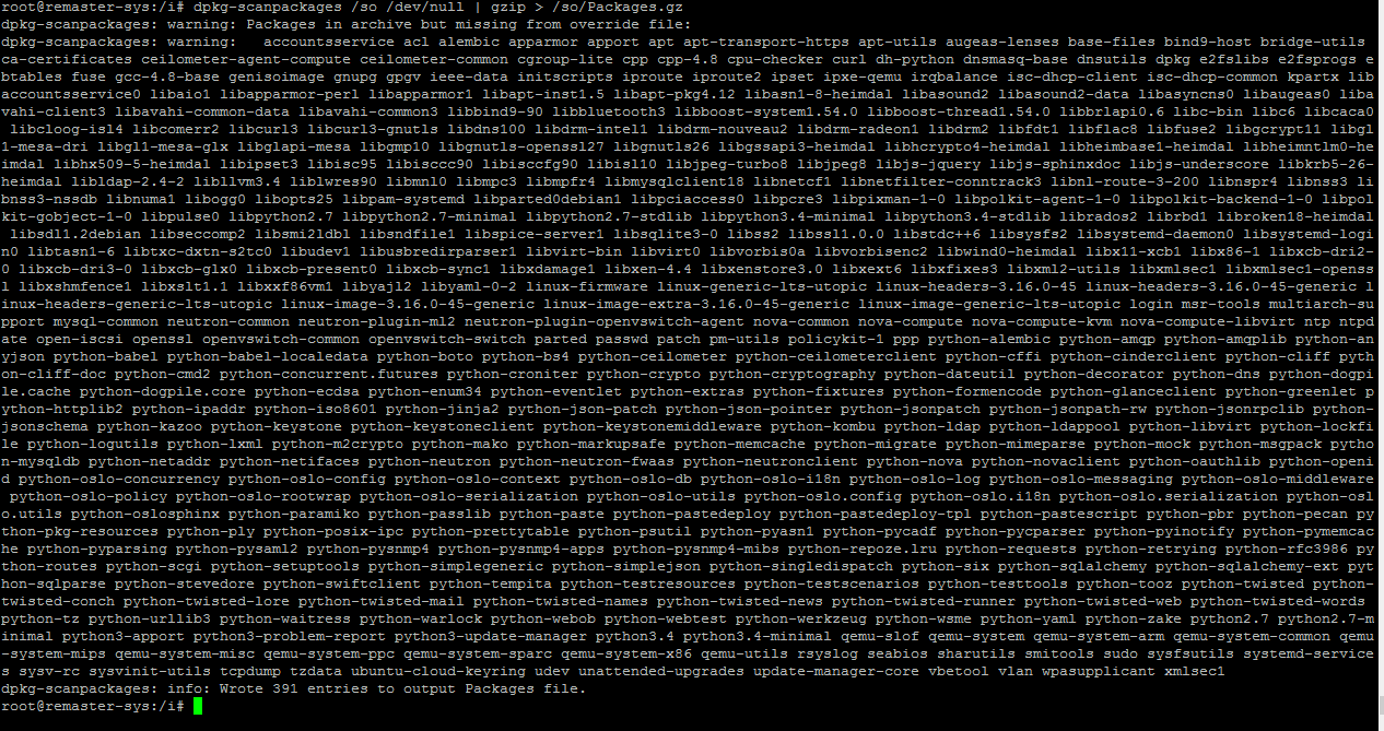dpkg-scanpackages /software /dev/null | gzip>/software/Packages.gz