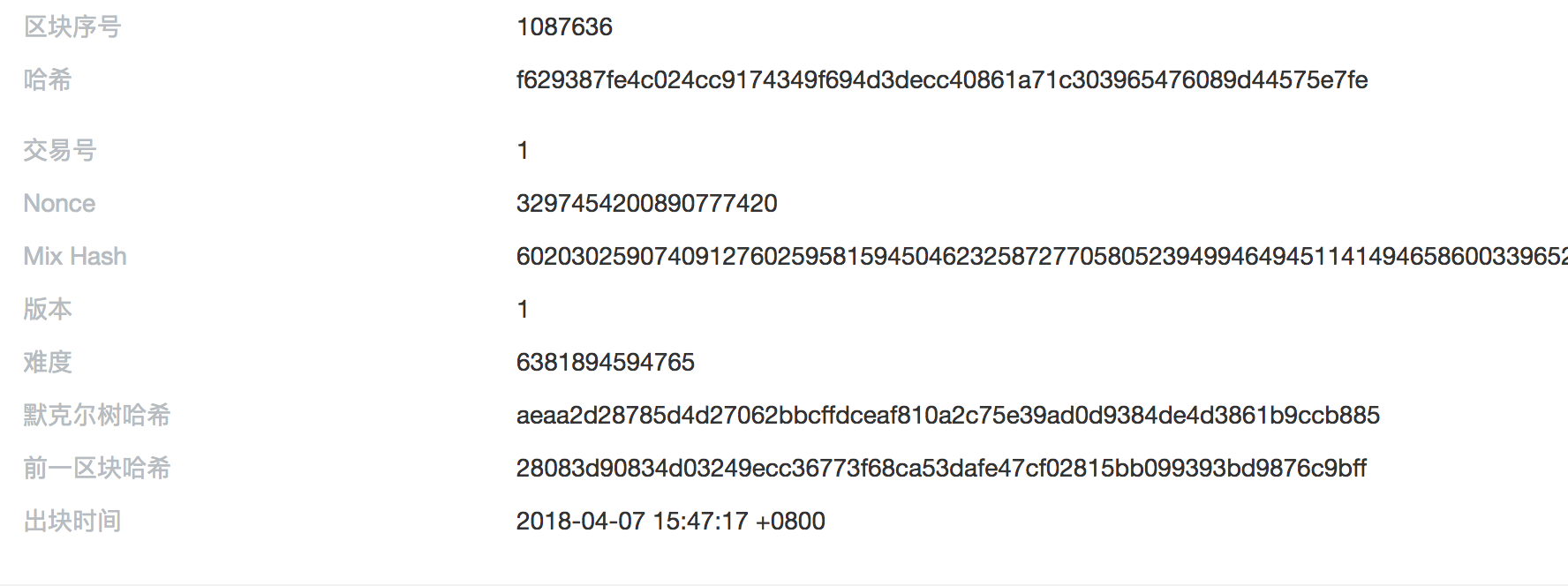 图中有当前区块高度、本区块的哈希、前一区块哈希、nonce值等等。