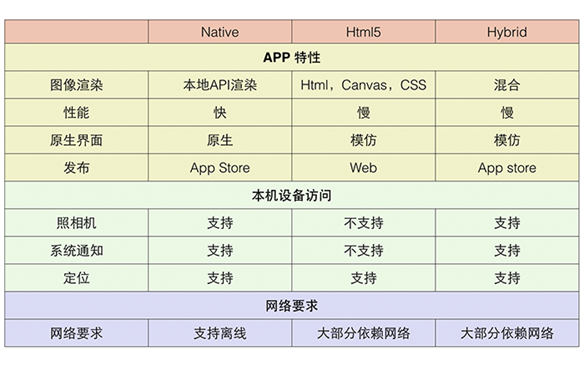 Web App、Hybrid App、Native App 技术特性
