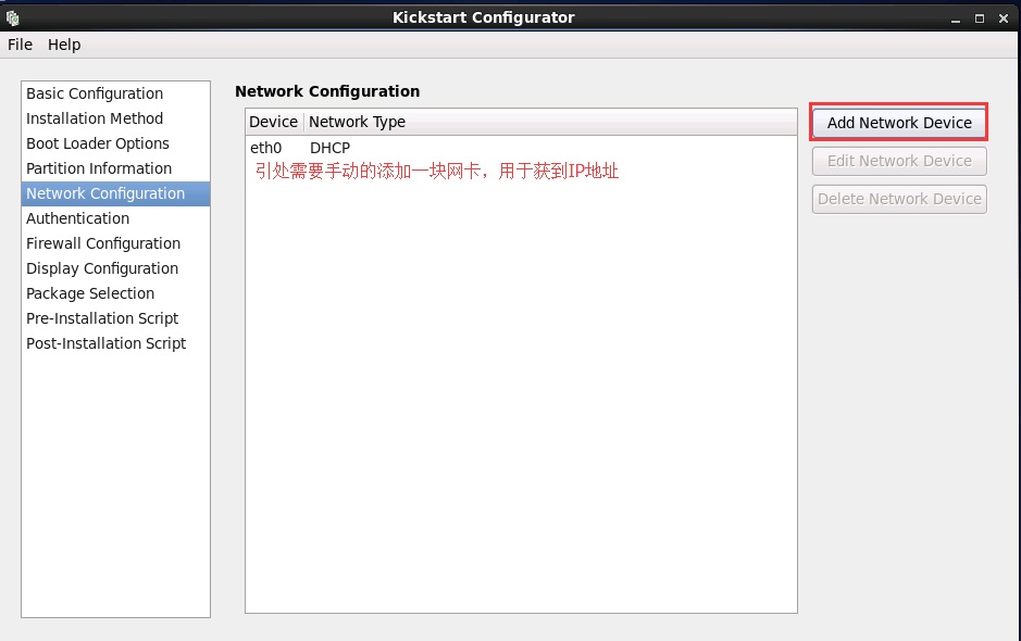 1、 在图形界面中打开终端,输入下面的命令来调出kickstart配置工具。