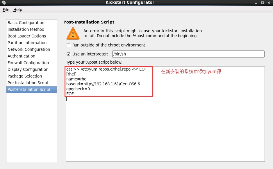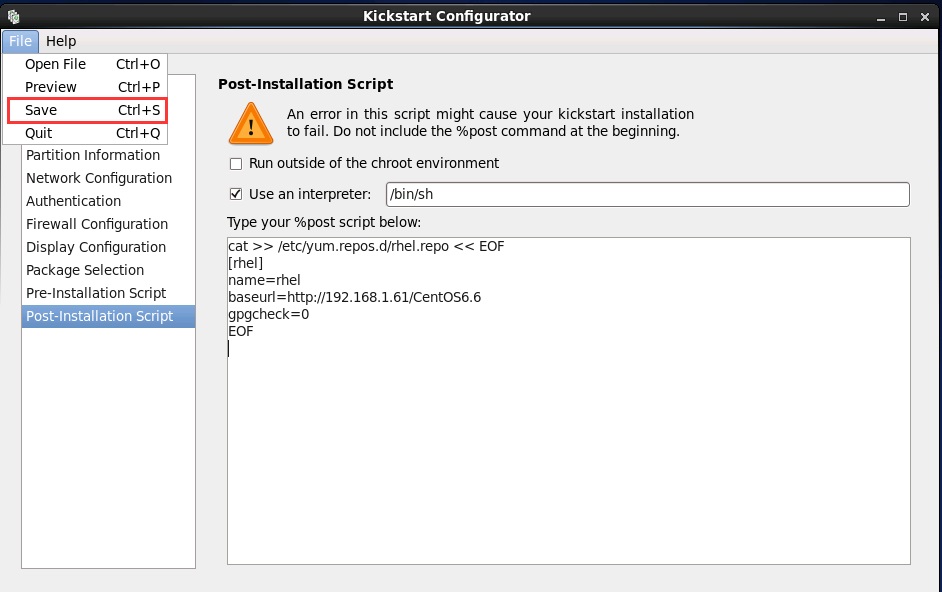 [root@Server ~]# vim /var/www/html/ks.cfg