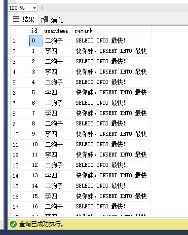 set @remark='SELECT INTO 最快!'
