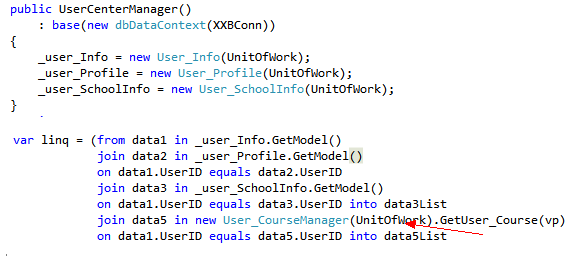 事实上,它是将EEE114Base基类中传递了一个数据上下文,这些数据上下文都会继承IunitOfWork这个接口,并最终实现统一的提交动作,我们在开发中,建议为每个DAL类型都保留一个带有IunitOfWork参数的架构方法,这样才能保存我们的LINQ操作共处于一个数据上下文。