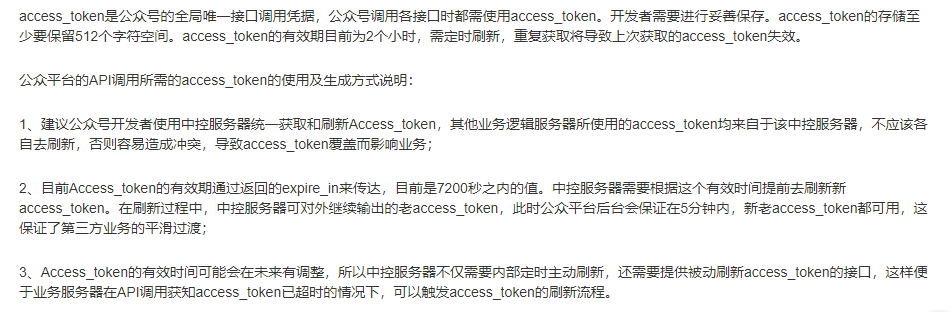 1.因为access_token有2个小时的时效性,要有一个机制保证最长2个小时重新获取一次。