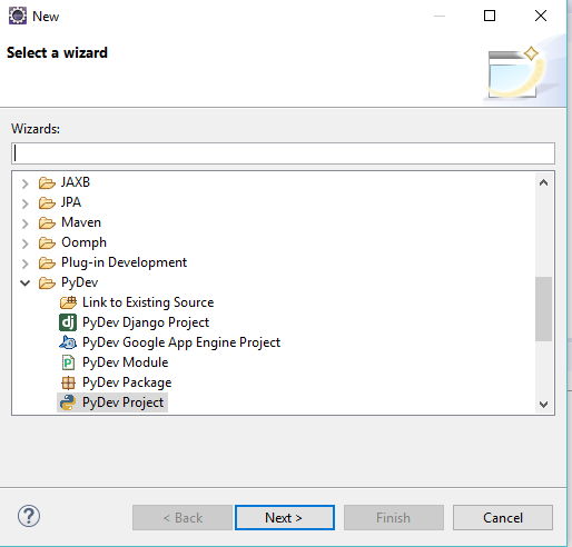 File--->New ---->Other--->找到PyDev,点选PyDev Project,依照提示,创建项目工程。