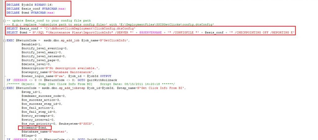 sqlcmd -S $LocalServer -E -i ssis_ClickInfo.sql